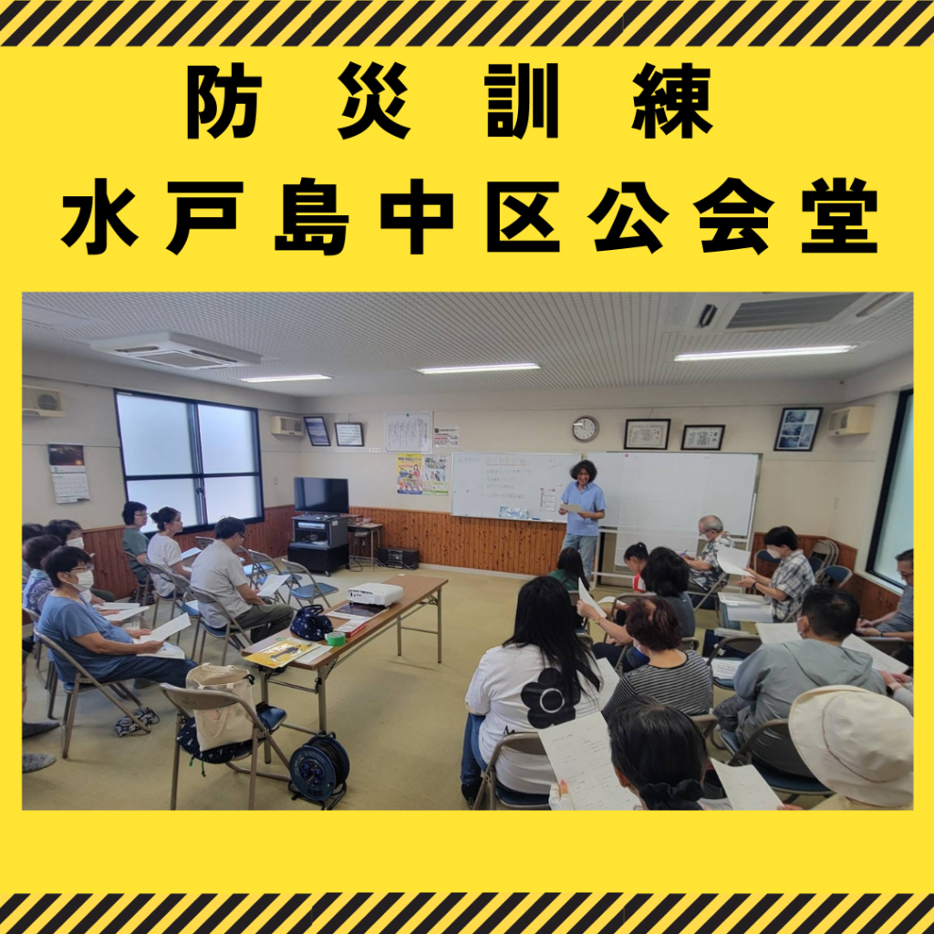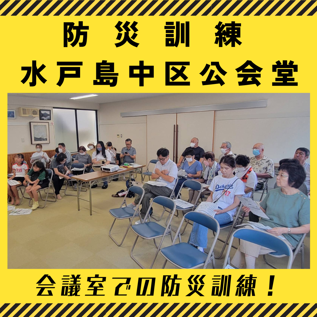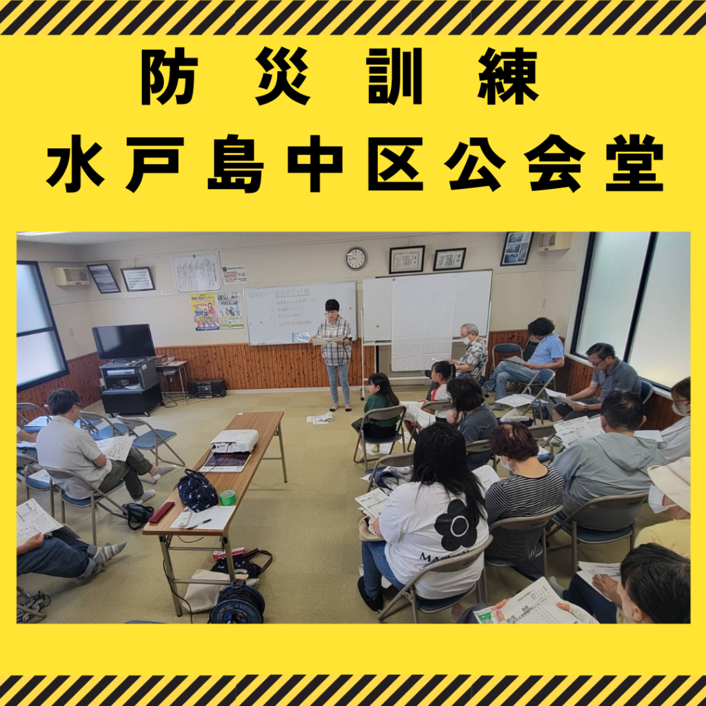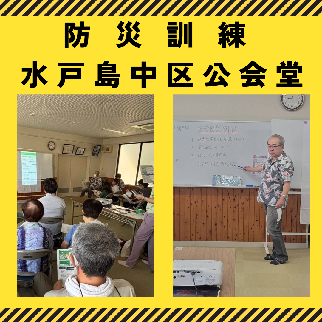 8月31日、防災訓練を水戸島中区公会堂で実施しました