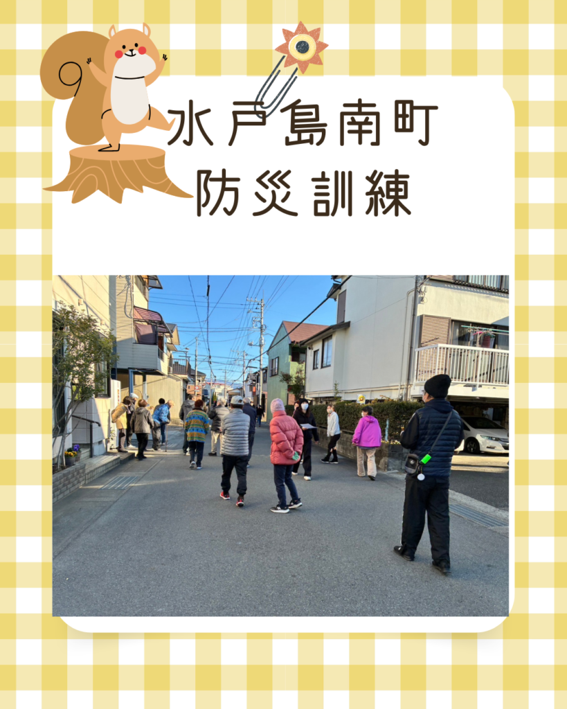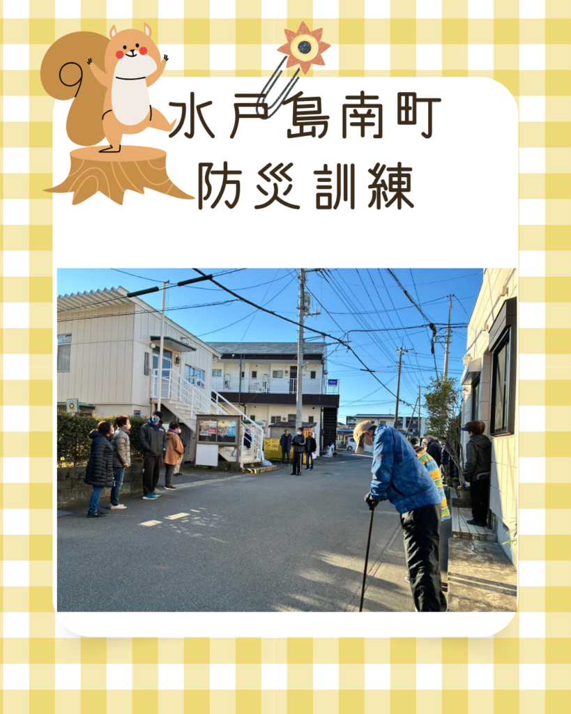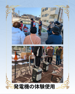 令和7年水戸島南町防災訓練 2025年12月19日 最終更新日時 : 2025年12月19日 kabufuji 富士市地域防災訓練日の12月7日に水戸島町内会の防災訓練を実施しました。当日は寒い日で高齢者の多い町内会ですが、多くの区民が参加してくれました。防災訓練の内容ですが、公会堂の前に集合して区長より説明。全員で班ごとに別れ安否確認をして安否確認シートに記入して本部に提出。また、今年度購入した発電機の試運転を行い稼働をかくにんしました。その後、非常食を配り解散。尚、松浦様、本多様は先に第二小体区間育舘での非難所運営訓練に参加、毛涯区長も合流しました。参加者の皆さま寒い中、お疲れ様でした。