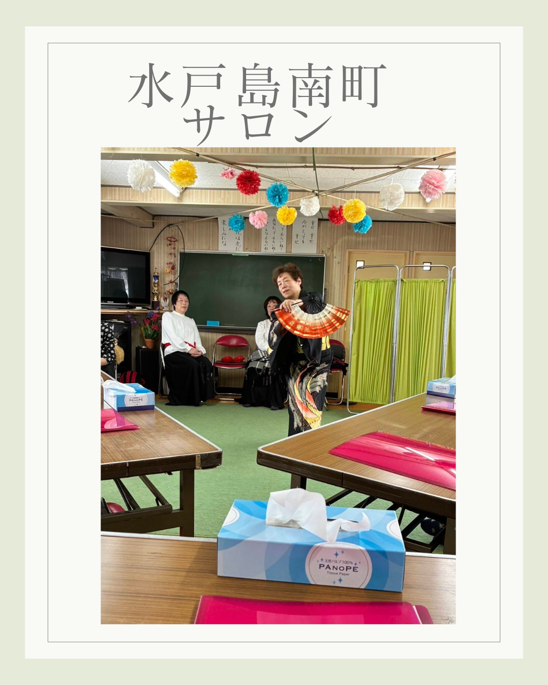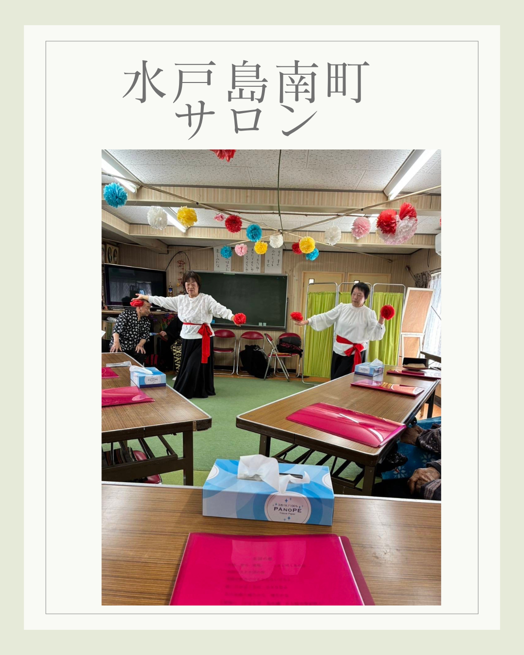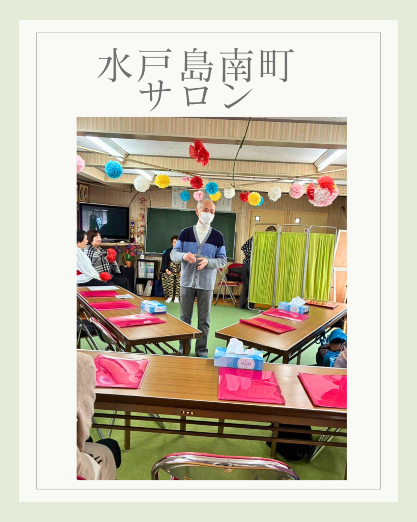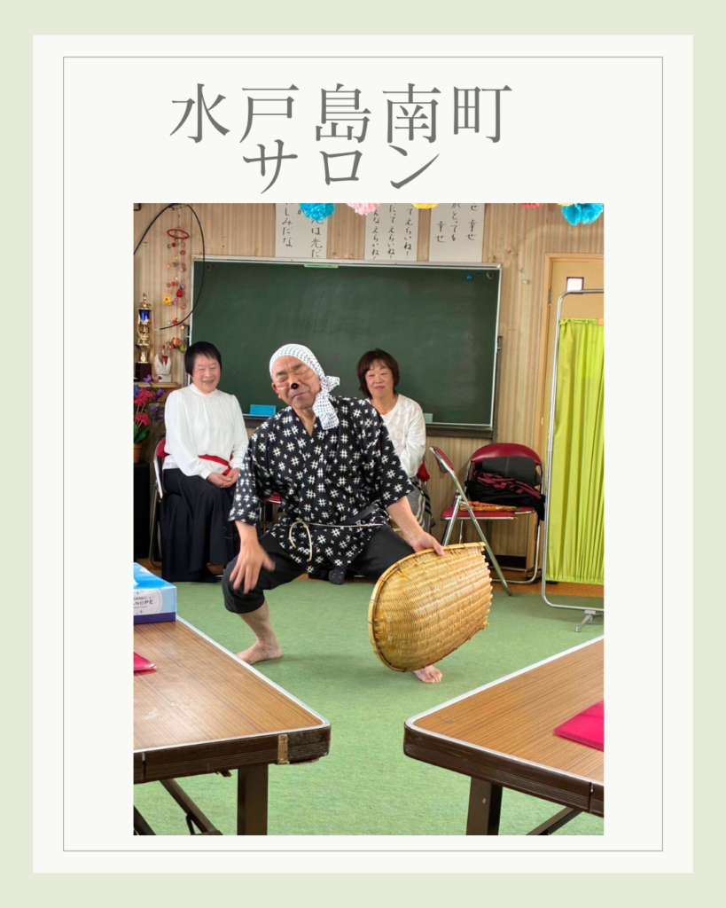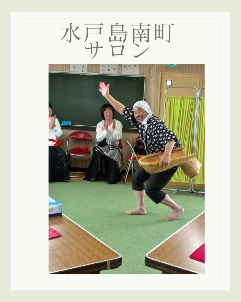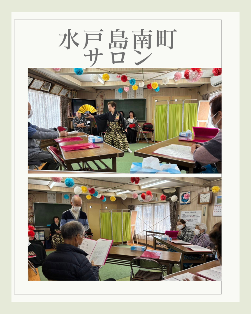 水戸島南町サロン 2026年3月17日 最終更新日時 : 2026年3月17日 kabufuji 2月10日水戸島南町サロンは、学芸クラブの皆さんをお迎えして開催しました♪最初にみんなで歌謡曲を歌い発生練習。続いて学芸クラブの皆さんは、色々な曲に合わせて新舞踏を披露。それに合せて手拍子で応えました。また、安来節が流れると屏風の後ろから「どじょうすくい」の出立ちで登場。ひょうきんな表情や楽しい踊りでみんなおお笑いで拍手喝采でした♪踊りを鑑賞した後は、みんなでお茶とお菓子で話も弾みました♪