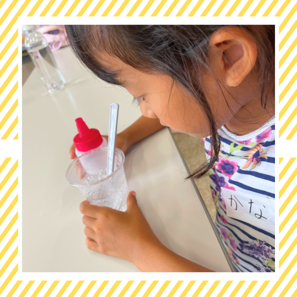 涼しげな音とともに出てくるシュワシュワ泡に見入る子供たち。