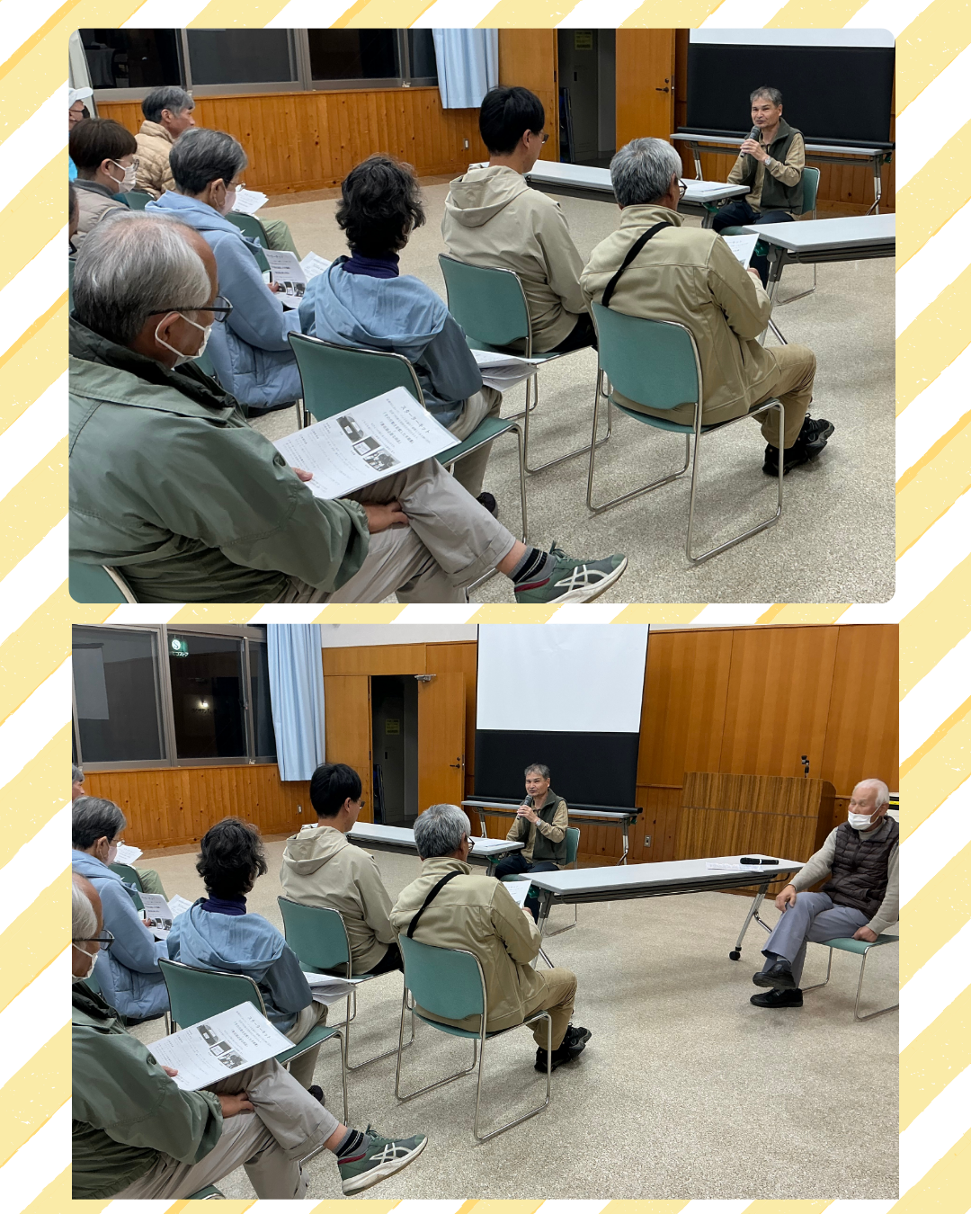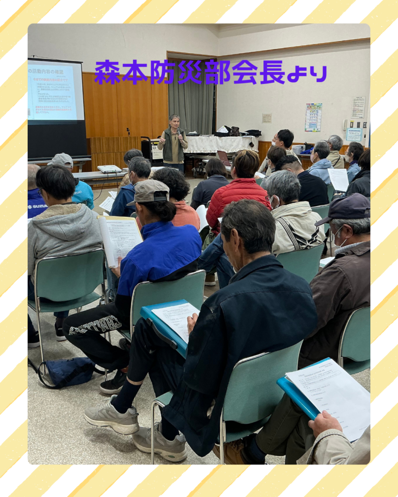 駅南地区避難所運営訓練 2025年11月27日 最終更新日時 : 2025年11月27日 kabufuji 11月14日に駅南地区避難所運営訓練の事前会議を小木の里ホールで開催しました。森本防災部会長、高沢様のお二人より資料に基づき説明があり、その後各担当に別れグループ討議を行いました。