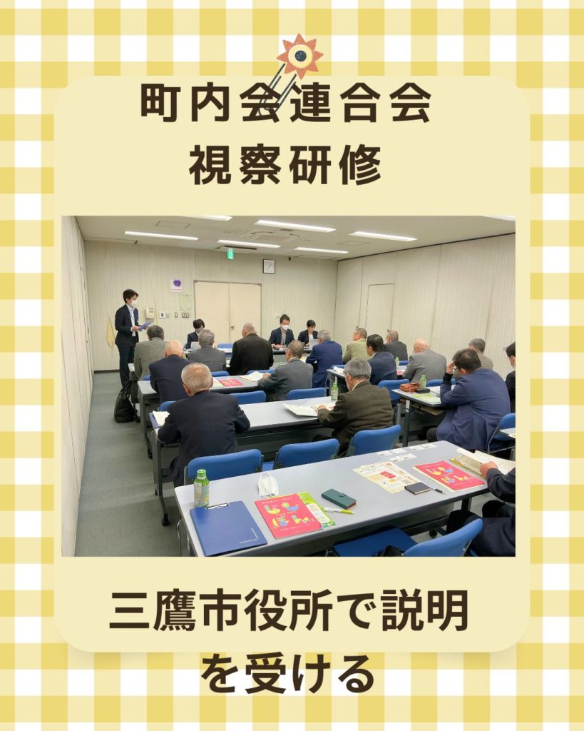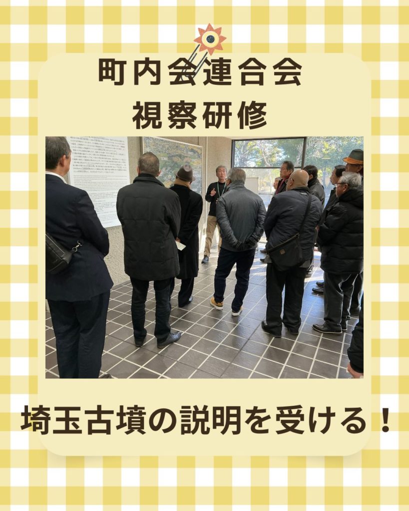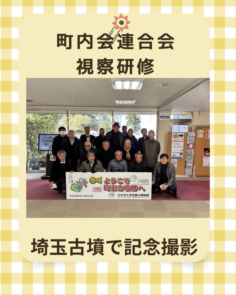 区長会連合会視察研修(三鷹市) 2026年2月25日 最終更新日時 : 2026年2月25日 kabufuji 令和7年度区長会連合会視察研修【東京都三鷹市市役所砲門】1.地域通貨(地域通貨、レジタル商品券・・・アプリ)について説明がありました。2.三鷹市の町内組織は富士市と比べると組織化してない。3.全体に市政への市民の係りが少ない4.埼玉古墳の見学5.「小江戸川越」街並み探索