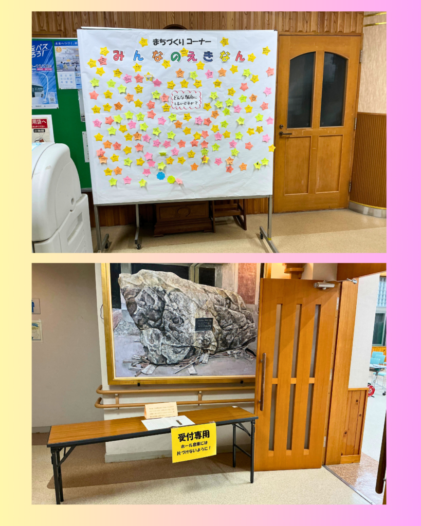 会場には先日の二小トークフォークダンスの子どもたちと大人の声を「コラージュ」しました。