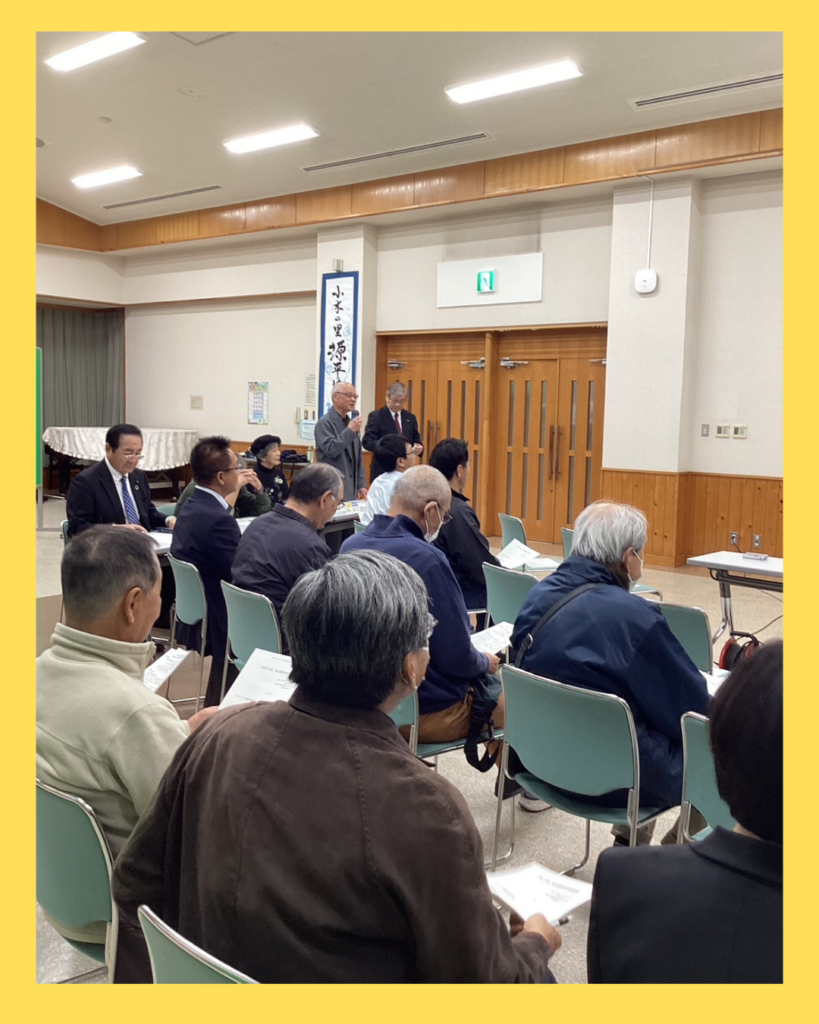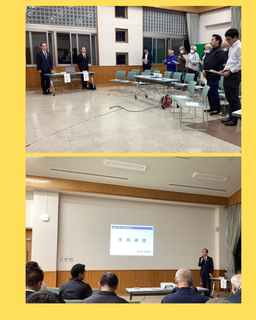 令和7年度行政懇談会が11月6日19時より小木の里ホールにて小長谷市長と山田副市長をお迎えして開催されました。