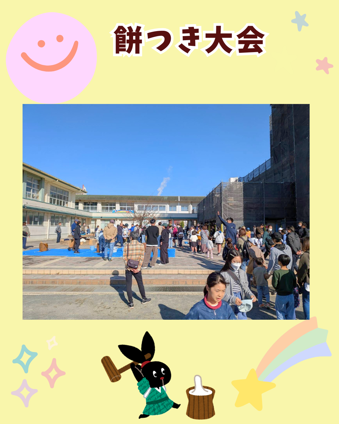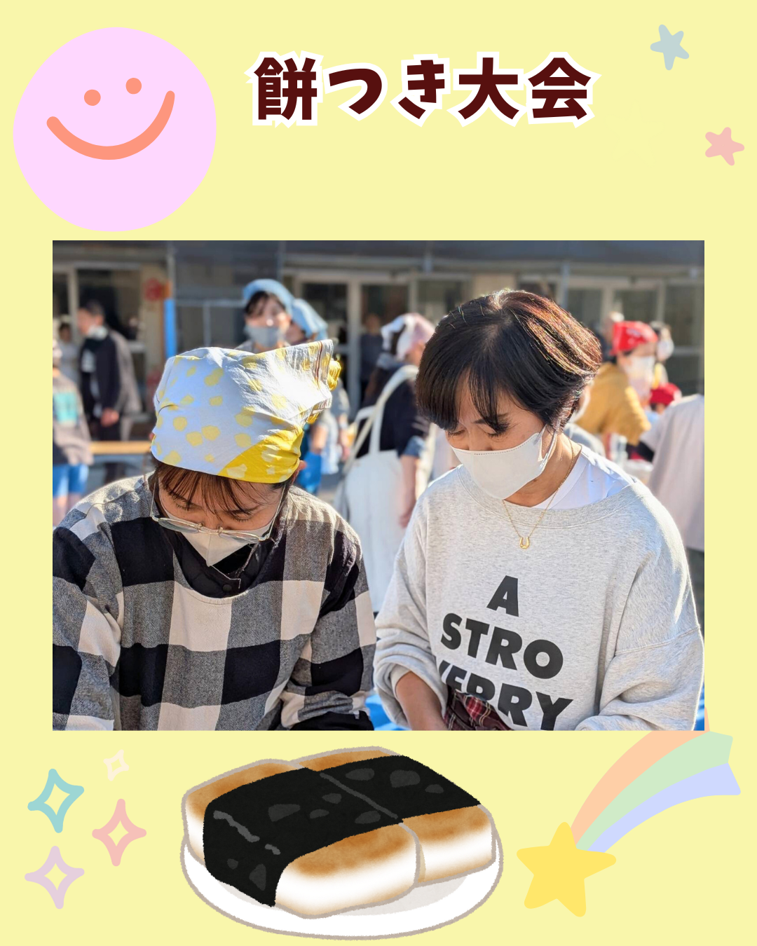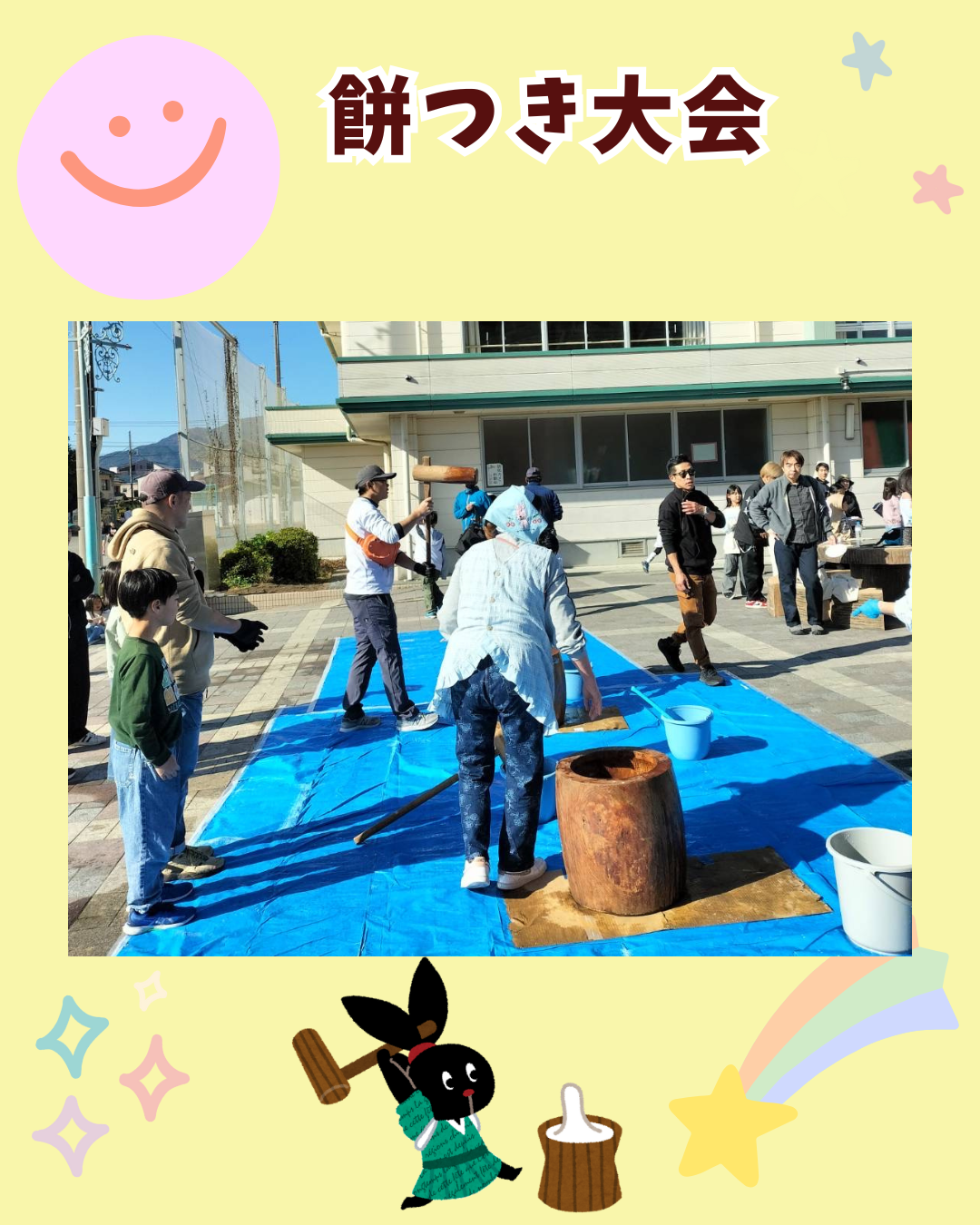 二小PTA主催餅つき大会 2025年12月11日 最終更新日時 : 2025年12月11日 kabufuji 毎年恒例のPTAイベント餅つき大会を開催した。第二小学校80周年、「餅つき大会20回記念と、筋目の年に天気にも恵まれ大勢の方達と、大賑わいの餅つき大会でした。PTAは役員の成りてが少なく存続の危機にあります。今後もこのように子ども達が、学校とは楽しく笑顔になれる場所なんだと感じてもらえるイベントなどを続けて行くため、保護者さんにPTAに役員として参加してほしいでいす。PTAの活動を応援宜しく御願いします。